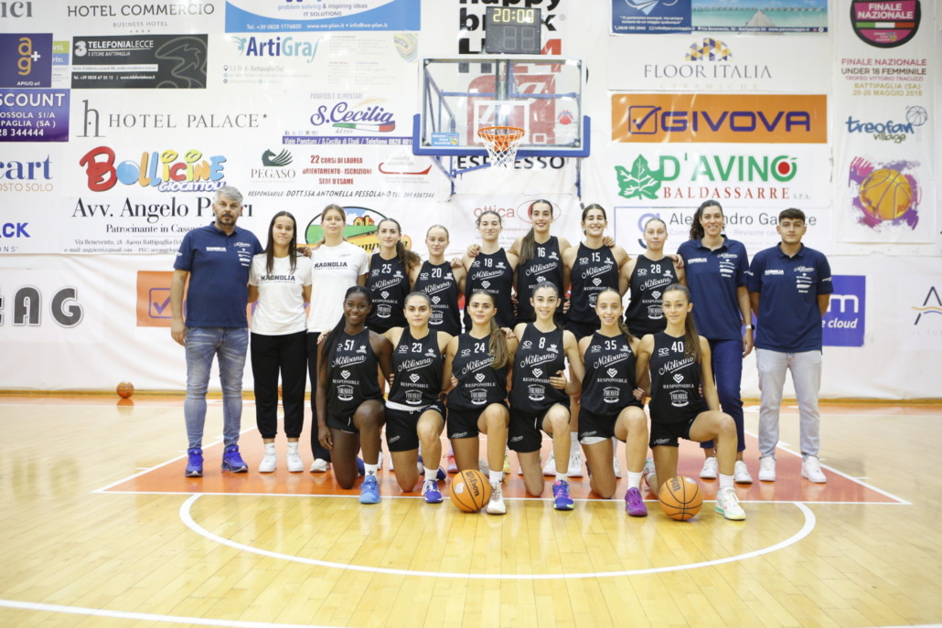 PERCORSO DI GARA L’avvio delle giovani magnolie è alterno con qualche errore di troppo sia in attacco che in difesa. Battipaglia va sul 6-0 prima e poi sul 12-4 con le rossoblù che si riportano sotto con un controbreak di 7-2 che le avvicina ad un solo possesso (14-11), anche se le cilentane chiudono il primo periodo sul +4 (15-11). L’abbrivio del secondo periodo è horribilis con un 13-0 al passivo, ma è proprio nel momento del massimo svantaggio (28-11) che emerge il carattere delle campobassane. Le energie provenienti dalla panchina (in particolare Tateo, Altavilla, Carrarini e Felicita 30 punti in quattro) e la prova di Costato riportano sino al meno sette (35-28) le campobassane, che hanno nove lunghezze di svantaggio all’altezza dell’intervallo lungo. Al rientro dagli spogliatoi, la gara è sospesa in avvio, per alcuni minuti, complice l’infortunio patito da Silvestri, poi è ancora Battipaglia a fuggire e ad arrivare al +16 del 30’ (52-36). Le rossoblù restano in linea nella prima metà dell’ultimo periodo e poi danno vita ad un finale di grande sostanza che le riporta sino al meno sei finale (63-57).